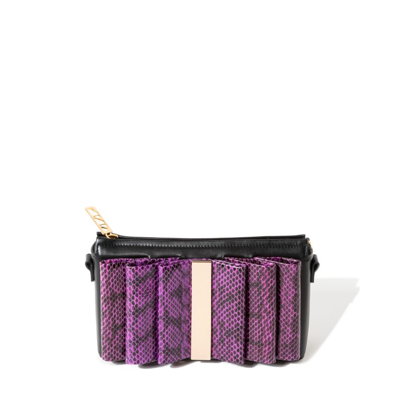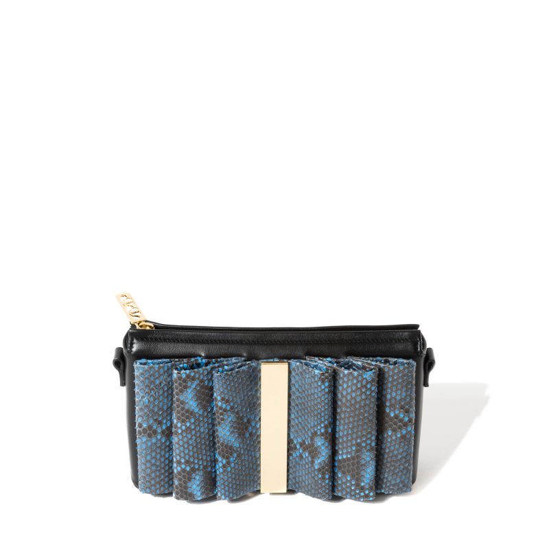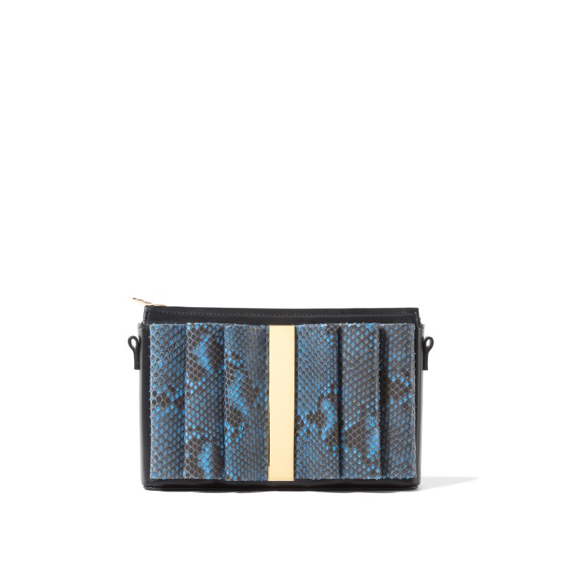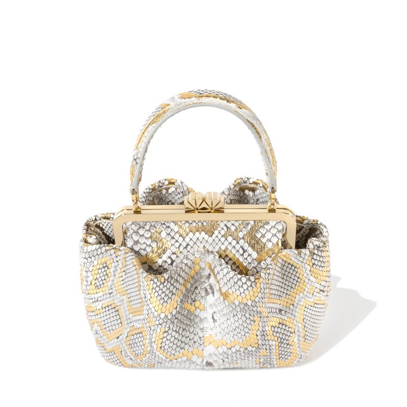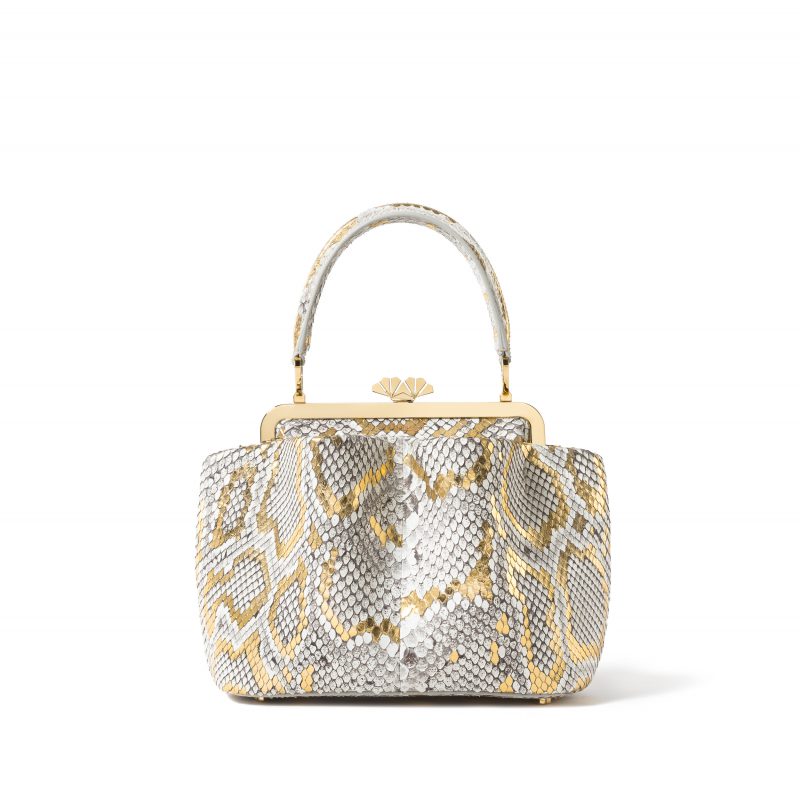 Bag realized in fine python and calf leather, lined in cotton canvas, classic gold-plated hardware. |