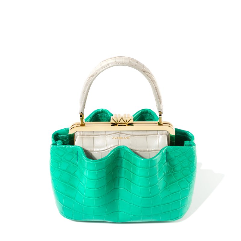 Bag realized in fine crocodile leather, lined in cotton canvas. |