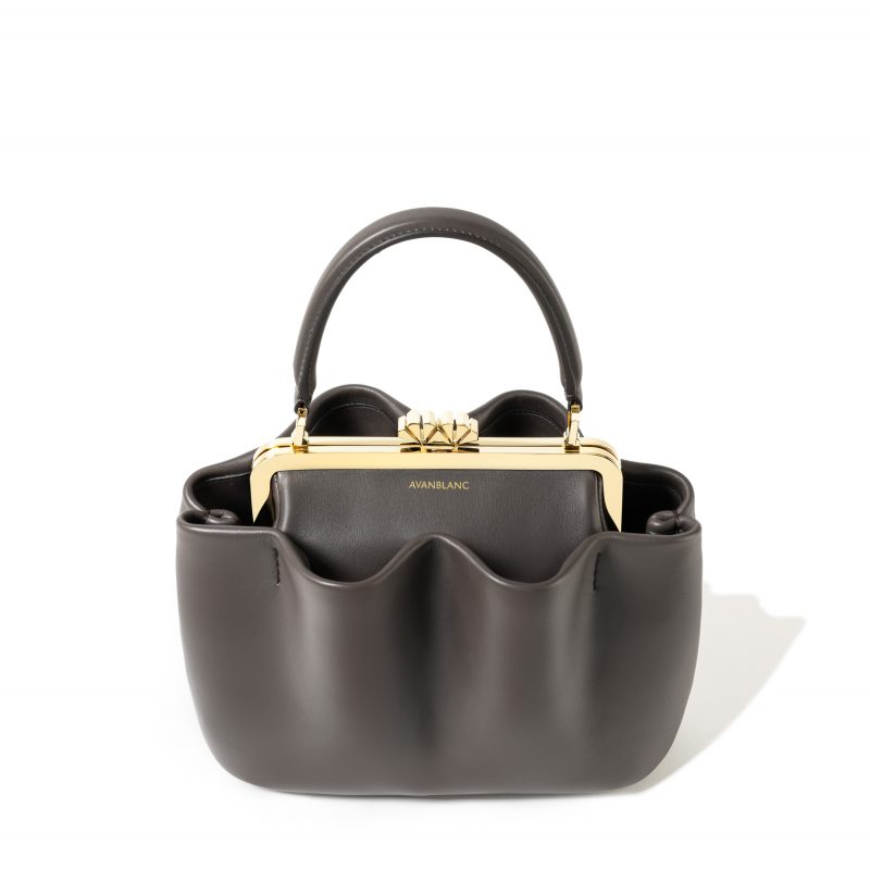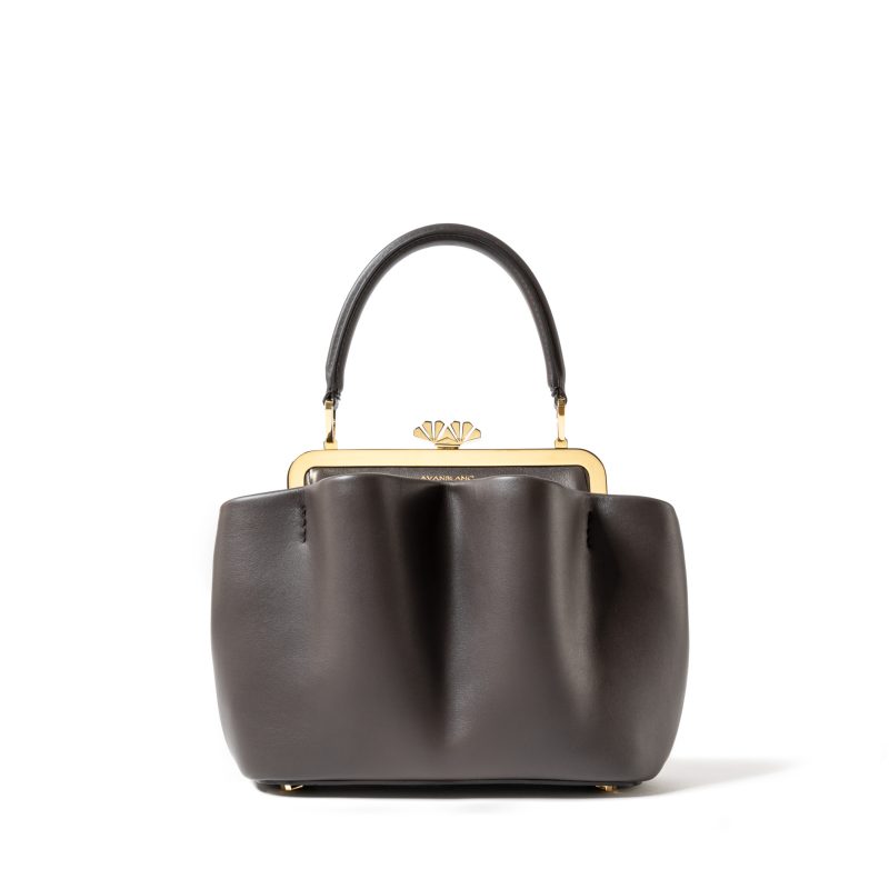 Bag realized in fine calf leather, lined in cotton canvas, amber gold-plated hardware. |